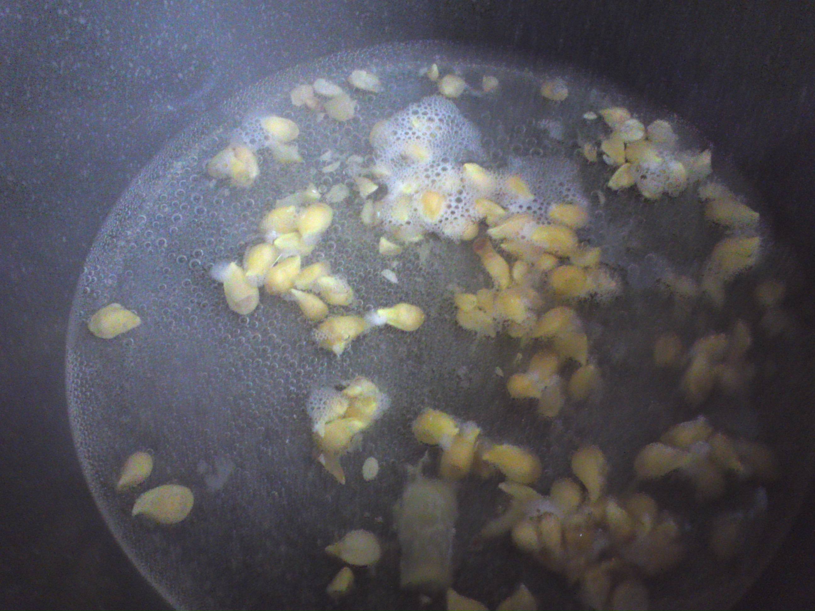 それだけじゃ水分が少ないので、ゆずの種を鍋で煮た汁を加えます。